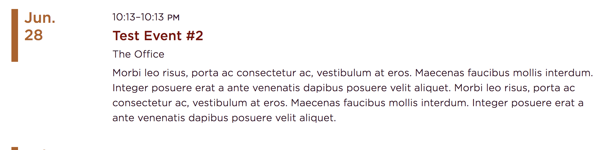 The location name and address can be inserted along with a summary. The summary will appear on the page /events.