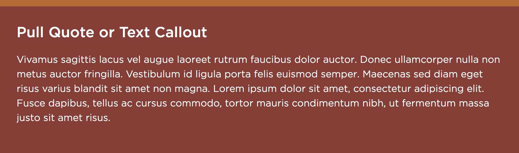 Next are sections that are also used on the basic interior pages. You can insert text, pull quotes with a background color, media (images and Youtube videos), accordion sections, and content to appear on the sidebar of the story including text and images.