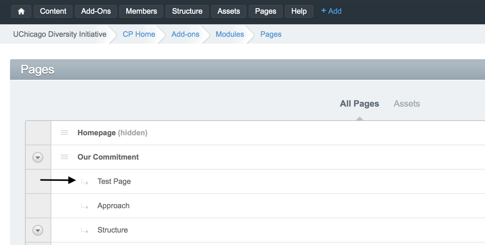 This will walk you through editing any basic interior page. The test page under the structure tree shows all of your options for content on any basic interior page. The same approach will be used to edit any interior page on your site.